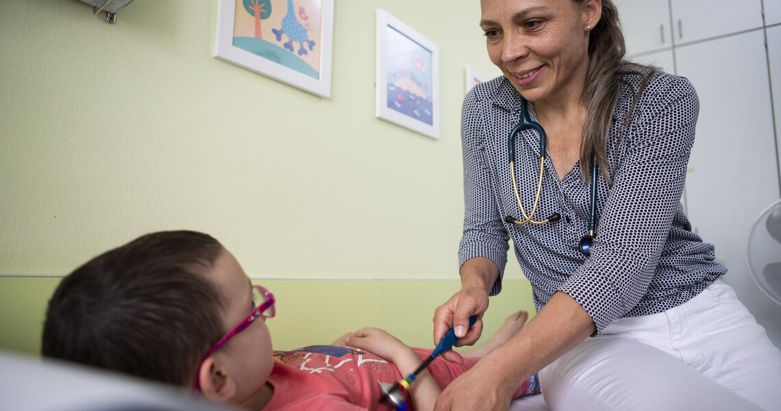 „Manche Kinder untersuche ich auf dem Schoß der Eltern. Das hilft oft, wenn ich merke, dass das Kind ängstlich ist. Dann fange ich vorsichtig bei den Füßen an und schaue, ob mir das Kind den direkten Kontakt erlaubt. Anders als bei Teenagern, werden die Eltern von Kleinkindern schon in die beobachtende und berichtende Funktion miteingebunden. Dafür erkläre ich ihnen vorab, worauf sie besonders zu achten haben.“