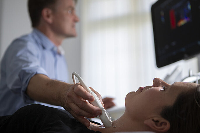 In seiner 28-jährigen Laufbahn als Schilddrüsenchirurg blickt er auf eine positive Entwicklung in der Endokrinen Chirurgie zurück: „Sowohl in der Diagnostik als auch in der Therapie gab es in den vergangenen Jahren viele hilfreiche Entwicklungen zugunsten der Patienten“, resümiert er. „Moderne Ultraschallgeräte können eine Elastografie durchführen. Das heißt, sie geben nicht nur Auskunft über die Größe und Beschaffen-heit eines Schilddrüsenknotens, auch die Durchblutungssituation und die Elastizität lassen sich damit darstellen. Je härter ein Knoten ist, desto verdächtiger ist er. Durch diese präzisen Untersuchungsmöglichkeiten lässt sich heutzutage das Risiko einer OP bzw. einer Nicht-OP besser bewerten.“