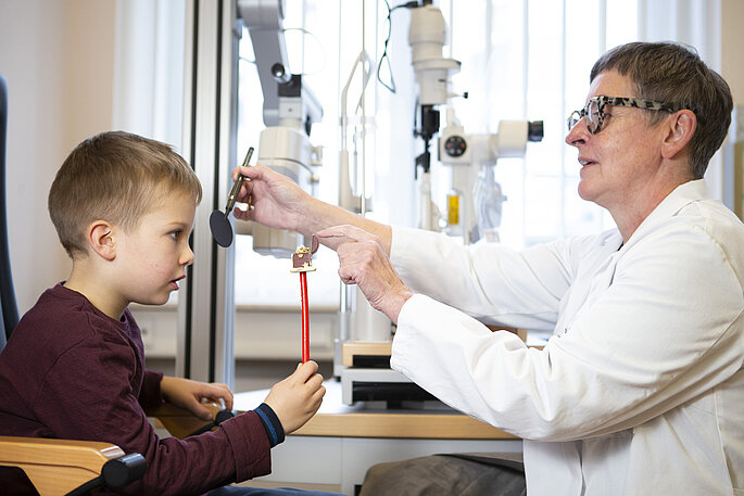 „Viele Eltern wünschen sich, dass ich das schielende Auge ihres Kleinkinds operiere und dann ist alles gut. Aber es gibt bei dieser Erkrankung keine Abkürzung. Da muss ich die elterlichen Erwartungen ausloten und eine gute Aufklärung leisten, damit wir eine realistische Grundlage und letztlich ein erreichbares Ziel finden“, erläutert Susanne Pitz die Zusammenarbeit mit den Eltern.