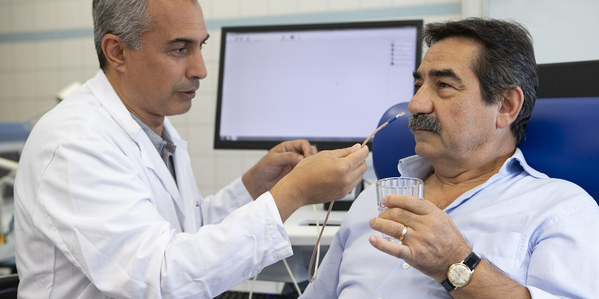 Vor einer Erörterung der Behandlungsmöglichkeiten legen seine Kolleg:innen im Refluxzentrum deswegen großen Wert auf eine korrekte Diagnose. „In der Regel gehen wir den Beschwerden mithilfe einer Kombination aus Anamnese, körperlicher Untersuchung und verschiedenen diagnostischen Verfahren auf den Grund“, so Oberarzt Ayman Salman.