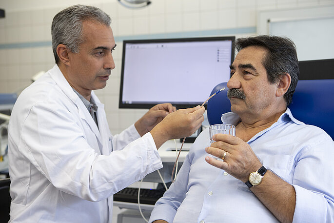 Ob Magenspiegelung, Breischluckuntersuchung oder eine sogenannte Manometrie durch die Nase – das Zentrum bietet alle gängigen Untersuchungsmöglichkeiten im Kontext einer möglichen Refluxerkrankung an. „Die Auswahl der diagnostischen Verfahren ist individuell und hängt von der Anamnese und möglicherweise bereits vorliegenden Befunden ab“, erklärt Salman. Aufbauend auf den Ergebnissen können mit den Patient:innen die besten Behandlungsoptionen und Therapiemöglichkeiten diskutiert werden.