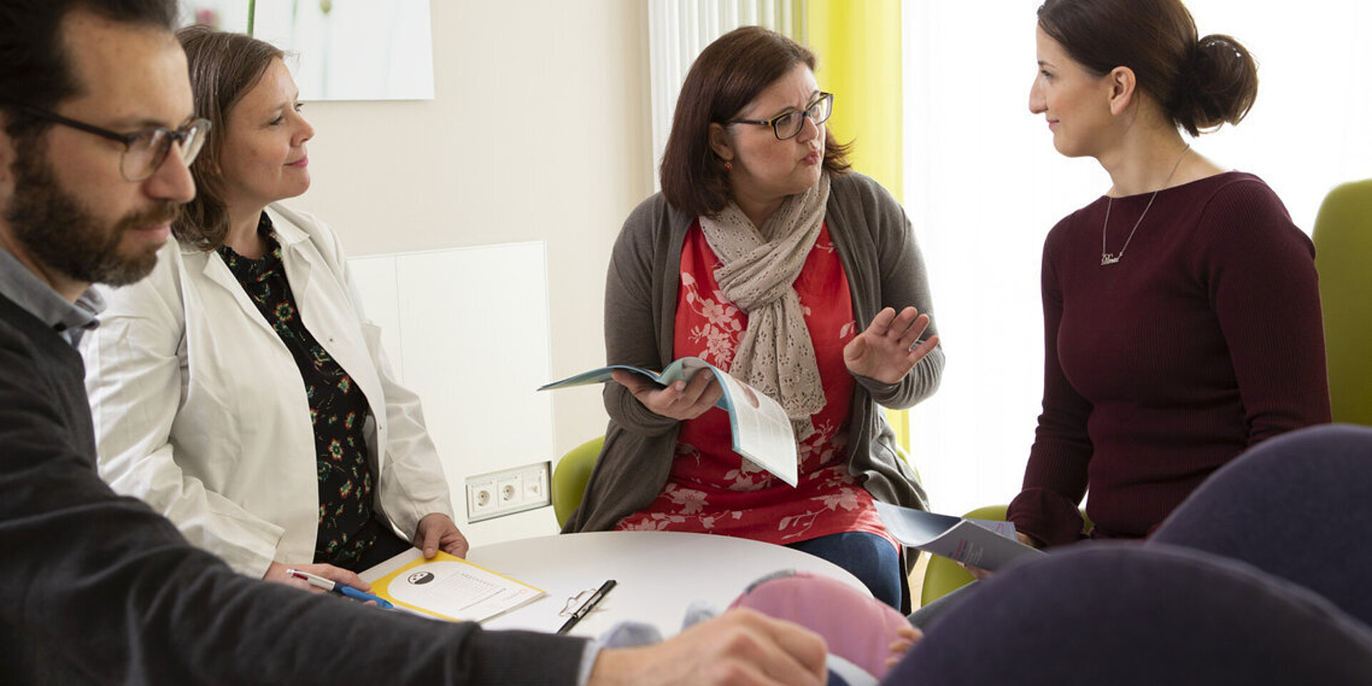 Gruppe: „Wir sehen die Familie als Gesamtheit. Allgemeine Unsicherheit im Umgang mit dem Kind, eine schwierige soziale Situation und natürlich die Schwere der Erkrankung des Kindes spielen bei der Entscheidung mit. Es gibt Frühgeborene mit wenig Komplikationen, die im guten Zustand nach Hause entlassen werden und keine sozialmedizinische Nachsorge benötigen. Daneben gibt es Kinder mit Komplikationen wie Hirnblutungen oder schweren Lungenerkrankungen als Folge der Frühgeburtlichkeit, die einen Mehrbedarf an Betreuung nachstationär haben. Aber auch wenn wir sehen, dass bei den Eltern eine hohe Unsicherheit vorliegt, fließt das in unsere Entscheidung ein. Denn hier ist der Bedarf groß, die Elternkompetenzen zu stärken, die nötigen Hilfsangebote zu installieren und eine gute Infrastruktur zu schaffen.“