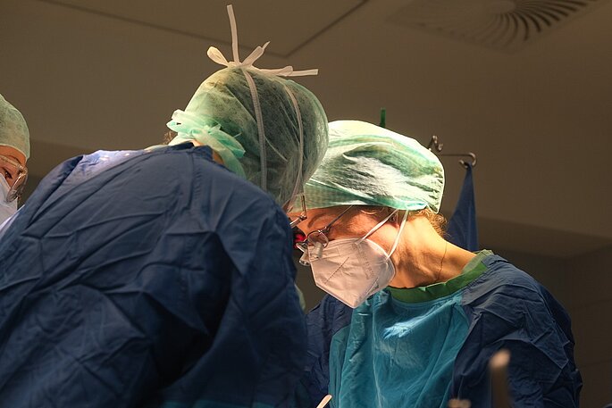 Neben all diesen positiven Aspekten in der Kinderchirurgie ist für sie auch der hohe medizinische Anspruch ein Ansporn: „Es kommt immer häufiger vor, dass Kinder viel zu früh auf die Welt kommen. Wenn wir ein Kind in der 23. Schwangerschaftswoche operieren müssen, das kaum 400 Gramm auf die Waage bringt, dann ist das in vielerlei Hinsicht komplex.“ Nicht nur, dass die zu operierenden Körperteile und damit auch die Instrumente sehr klein sind, es gilt auch zu berücksichtigen, dass für so kleine Kinder der Blutverlust streng überwacht werden muss. Um Stress zu vermeiden und um die Körpertemperatur konstant zu halten, werden die Frühgeborenen zudem im wärmenden Inkubator auf der neonatologischen Station operiert, die Chirurg:innen tragen Lupenbrillen. Solche Operationen sind nicht nur handwerklich eine große Herausforderung, sondern mitunter auch emotional. „Auch für uns sind manche Situationen aufreibend, denn wir setzen unser ganzes Können ein und haben gerade bei Extremfrühchen den Ausgang doch nicht immer in der Hand.“