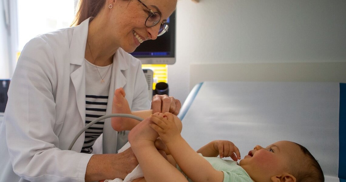 Wenn bei Dr. med. Sabine Grasshoff-Derr das Telefon klingelt, sind es nicht selten die Kolleg:innen aus dem Pränatalzentrum, die soeben Eltern eine beunruhigende Diagnose überbringen mussten. Sie bitten die Chefärztin der Klinik für Neugeborenen-, Kinderchirurgie und -urologie, dazuzukommen und sich mittels Ultraschall ein eigenes Bild zu verschaffen. Denn wenn feststeht, dass ein ungeborenes Kind eine auffällige Entwicklung zeigt, braucht es eine frühzeitige Beurteilung verschiedener Spezialisten.