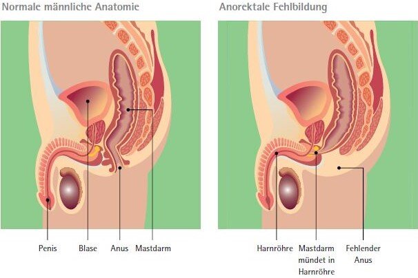 Bei einer Analatresie etwa, wenn der Enddarm des Kindes fehlt oder wenn der Darmausgang als Fistel in der Scheide oder der Harnröhre mündet, ist nach der Geburt ein sofortiger Eingriff notwendig. Die Kinder erhalten einen vorübergehenden künstlichen Darmausgang über die Bauchdecke. So kann sich der Darm entleeren und schwere Infektionen des Uro-Genital-Traktes werden verhindert. Die Neugeborenen haben anschließend Zeit zu wachsen, bevor in einer mehrstündigen Operation die umfassende Korrektur der Fehlanlagen erfolgt und Harnröhre, Scheide und Enddarm rekonstruiert werden. „Priorität hat immer zuerst die Entlastung des Systems, die endgültige Korrektur kann warten. Denn eine mehrstündige Operation samt der langen Anästhesie wird besser von den Kindern toleriert, wenn diese schon einige Wochen oder Monate alt sind“, begründet Dr. Grasshoff-Derr, weswegen Neugeborene nicht immer direkt operiert werden.