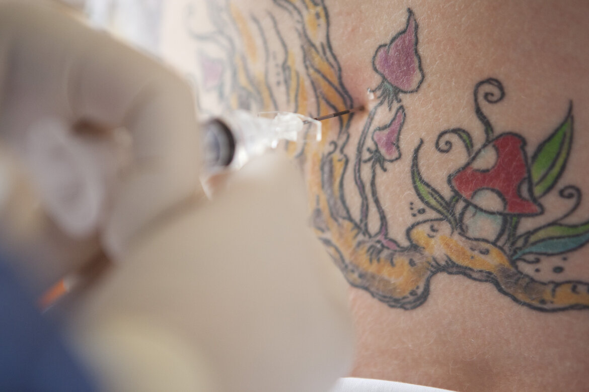 Auch bei großflächigen Rückentattoos finden die Anästhesisten in der Regel eine untätowierte Stelle, an der sich der Periduralkatheter legen lässt.