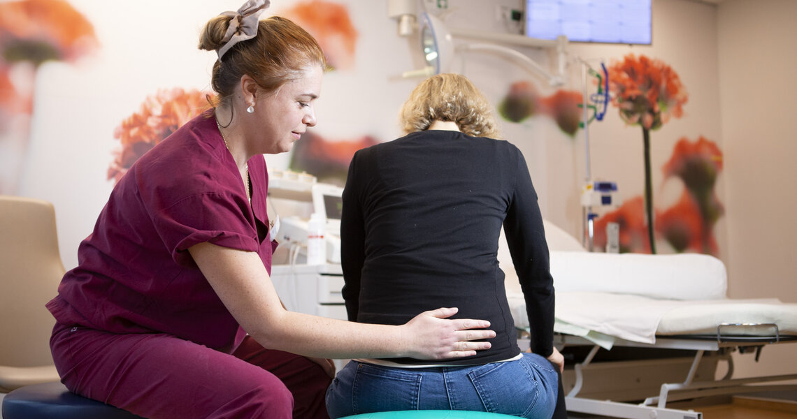 Ab dem zweiten Jahr folgten vierhändige Handgriffe, bei denen die anleitende Hebamme und die Schülerin ihre Hände übereinanderlegen. Nach und nach durfte sie später unter den wachsamen Augen einer erfahrenen Praxisanleiterin allein erste Handgriffe ausführen. In einem letzten Schritt lernte sie dann, gleichzeitig zu ihrer konzentrierten Tätigkeit mit den Frauen zu kommunizieren. „Das war anfangs gar nicht so einfach, parallel zu den Handgriffen auch auf die Frauen einzugehen. Aber die Frauen haben immer sehr positiv auf mich als Hebammenschülerin reagiert und ich wurde nie zurückgewiesen. Darüber war ich sehr froh“, berichtet sie weiter.