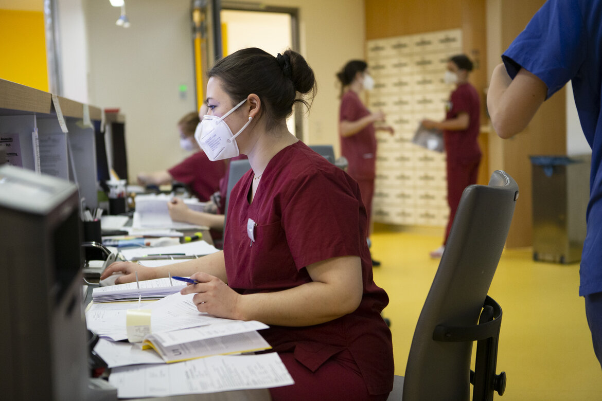 Auch Lea Fluhrer empfindet die Zusammenarbeit mit den Ärzt:innen als konstruktiv: „Ich kann mich jederzeit mit einem Arzt über Geburtsfortschritte austauschen, wir arbeiten nicht gegeneinander, sondern wir verstehen uns als ein Team. Auf meine Einschätzung als Hebamme wird großen Wert gelegt.“