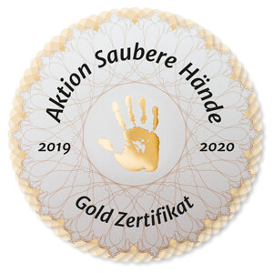 Das Bürgerhospital Frankfurt und das Clementine Kinderhospital haben erneut die Goldauszeichnung der „Aktion Saubere Hände“ erhalten. Zum wiederholten Mal erfüllen beide Häuser, die seit 2009 zusammengehören, damit die höchsten Anforderungen der bundesweiten Kampagne. Das Zertifikat ist für die Jahre 2019 und 2020 gültig.